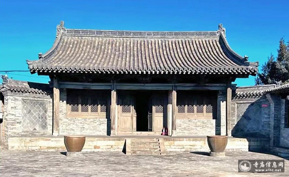 正殿位于中轴线最北端,面阔三间,进深五椽,单檐悬山建筑,梁架为六檩前出廊式构架,斗栱共计7攒,平身科3攒,柱头科4攒,皆为一斗二升斗栱,前檐柱间制安四扇六抹斜方格隔扇,两次间下砌槛墙,上置四扇四抹斜方格槛窗。